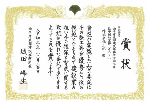 - 表彰名:東京都南多摩東部建設事務所長表彰